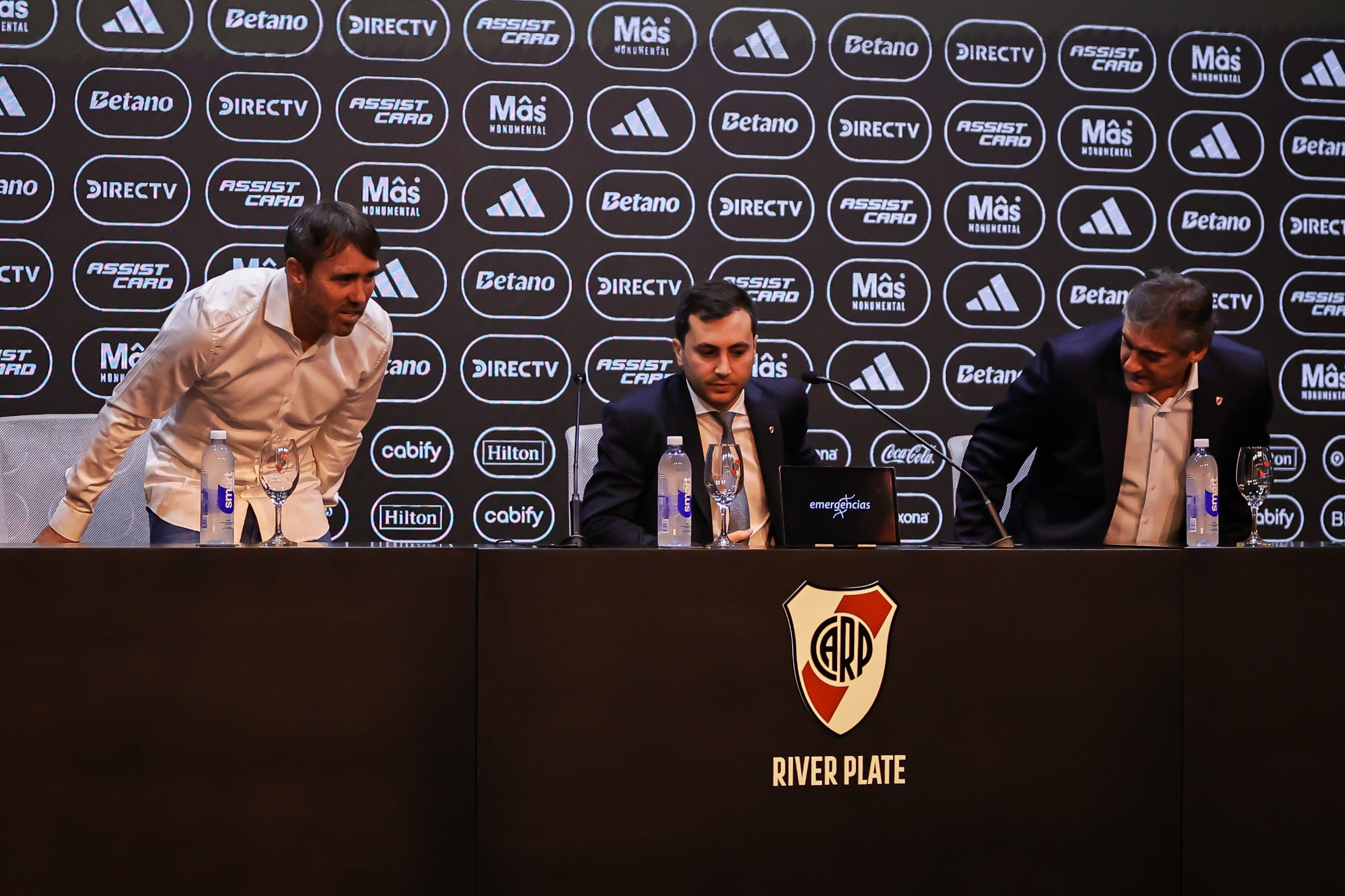 Antes había hecho la introducción Di Carlo. “Una decisión que tomamos con mucha alegría y con enorme convicción. Esperemos que esta nueva etapa traiga éxito deportivo. Hay un consenso generalizado entre todos los que hacemos el club en que es el mejor para este momento de River. Queremos decirle al hincha de River, al que llena la cancha hace 100 partidos consecutivos, que acompañe esta nueva etapa con entusiasmo, porque cuando estuvimos unidos River volvió a ser River. Invitarlos a abrazar este nuevo proceso y que todos juntos volvamos a poner a River en el lugar que todos queremos”, dijo el presidente.